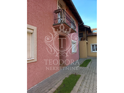 Kuća, IV zona, prizemlje, sprat i potkrovlje, površine u osnovi 98m2 na placu od 565m2. Prizemlje se sastoji od predsoblja, prostranog dnevnog boravka (sa kaminom), trpezarije, kuhinje, kupatila, spavaće sobe i kotlarice (dva kotla, na gas i čvrsto gorivo). Na spratu su četiri sobe i kupatilo (mogućnost uređenja u zaseban stan). Potkrovlje pruža mogućnost uređenja u deo za odmor i opuštanje. Stolarija je PVC sa roletnama. Kuća je građena po standardima i urađena je kompletna izolacija. U dvorištu se nalazi još jedna kuća sa dva odvojena stana. Takođe postoji i garaža za dva vozila. Iza kuće je zidani roštilj. U prirodi kompletan stambeni i korisni prostor je oko 500m2.